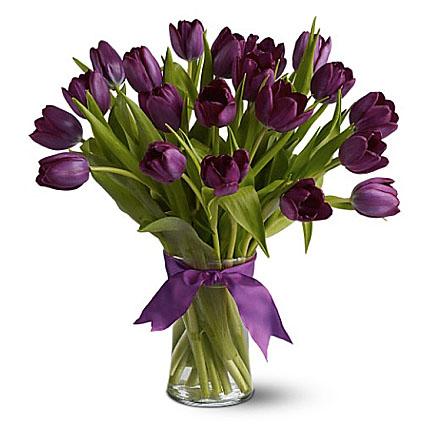 – 20 Tulipanes morados + Lazo. – Tarjeta Fruta Floral con dedicatoria