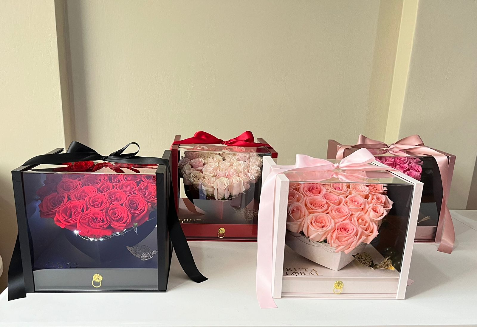 caja forrada colores disponibles: Rojo, rosado pastel, negro, golden rose